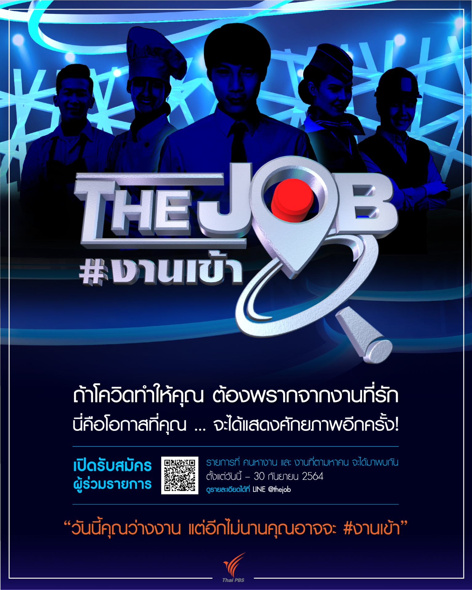 ไทยพีบีเอส ชวนคนหางานทั่วประเทศไทย ไม่ว่าคุณจะอยู่ที่ไหน มาแสดงศักยภาพให้ทุกองค์กรอยากเลือกคุณได้ใน รายการ THE JOB งานเข้า รายการที่จะเปิดพื้นที่ให้ “คนหางาน” กับ “งานที่หาคน” ได้มาพบกัน พร้อม Job Coach ตัวแทนผู้เชี่ยวชาญจากภาครัฐและเอกชน ที่จะมาช่วยแนะนำเทคนิคต่าง ๆ ให้คนหางานได้พบงานที่ใช่