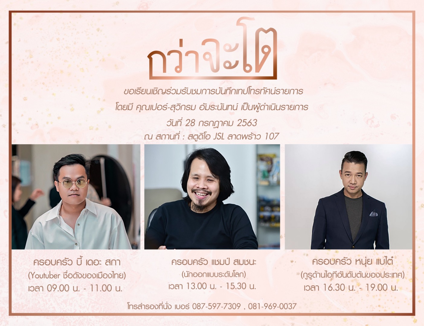 รายการกว่าจะโต ชวนเข้าชมการบันทึกเทป ร่วมเรียนรู้ ดูแต่ละก้าวของเหล่าผู้มีชื่อเสียง “กว่า” จะประสบความสำเร็จ