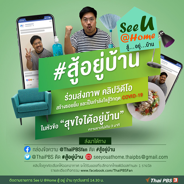 - Twitter @ThaiPBS โดยติด #สู้อยู่บ้าน