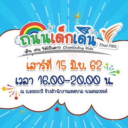 ไทยพีบีเอสชวนน้อง ๆ ชาวนครสวรรค์ ร่วมงาน “ถนนเด็กเดินไทยพีบีเอส” เสาร์ที่ 15 มิ.ย.นี้ ฟรี!!
