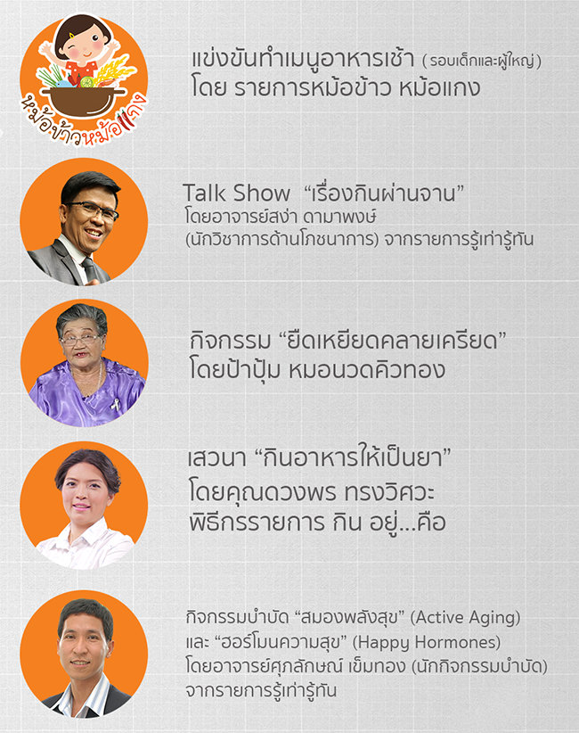 - แข่งขันทำเมนูอาหารเช้า (รอบเด็กและผู้ใหญ่) โดย รายการหม้อข้าวหม้อแกง