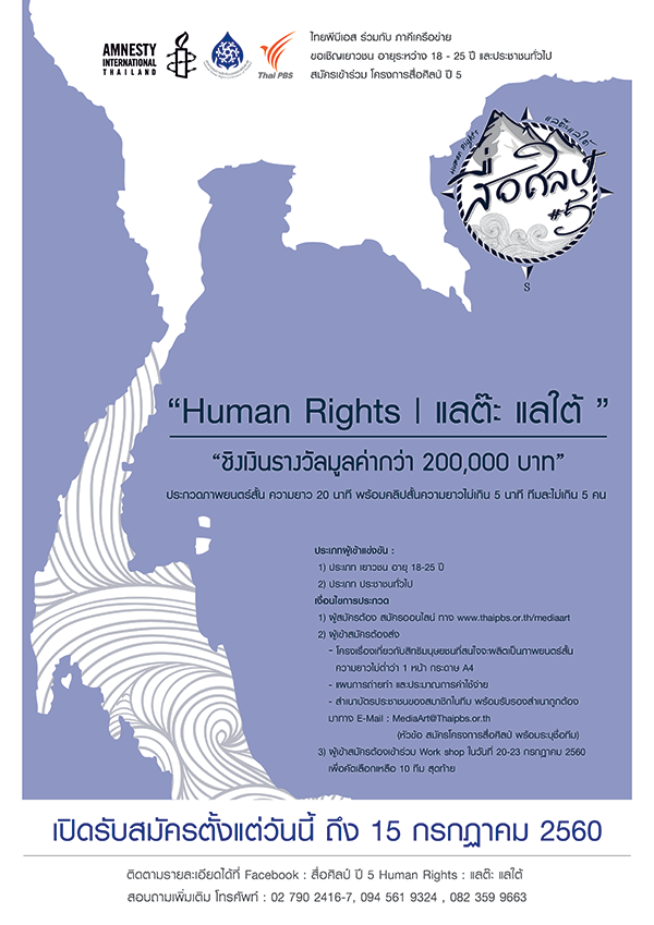 ไทยพีบีเอสเปิดรับสมัครคนรุ่นใหม่ ร่วมโครงการสื่อศิลป์ ปี 5 ตอน “Human Rights|แลต๊ะ แลใต้” ตั้งแต่วันนี้ – 15 ก.ค. 60