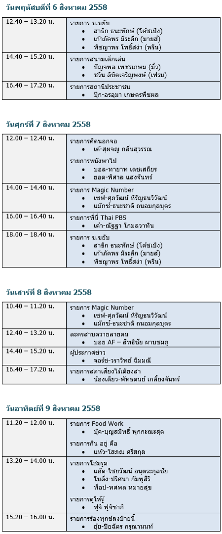 ตารางแนะนำรายการ พร้อมผู้ดำเนินรายการไทยพีบีเอส