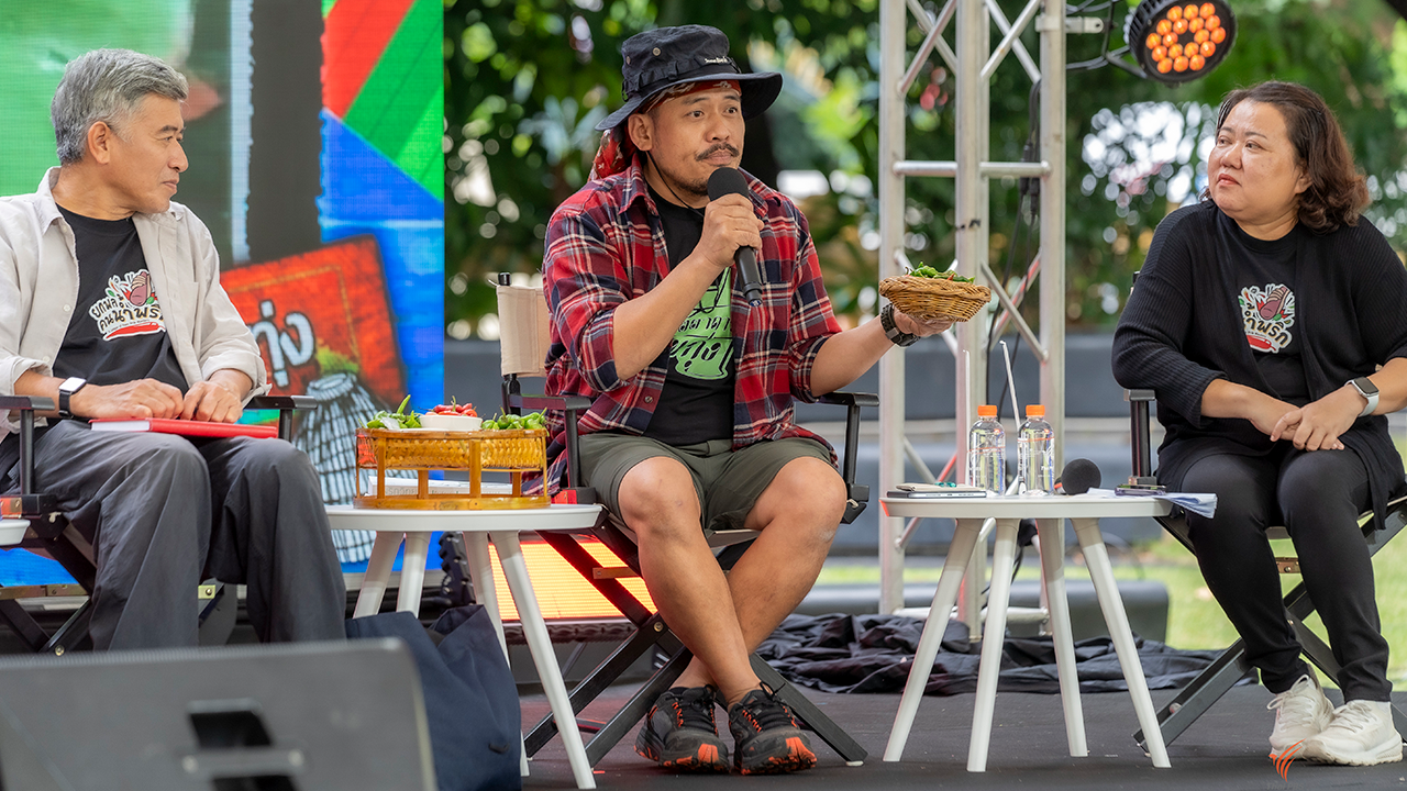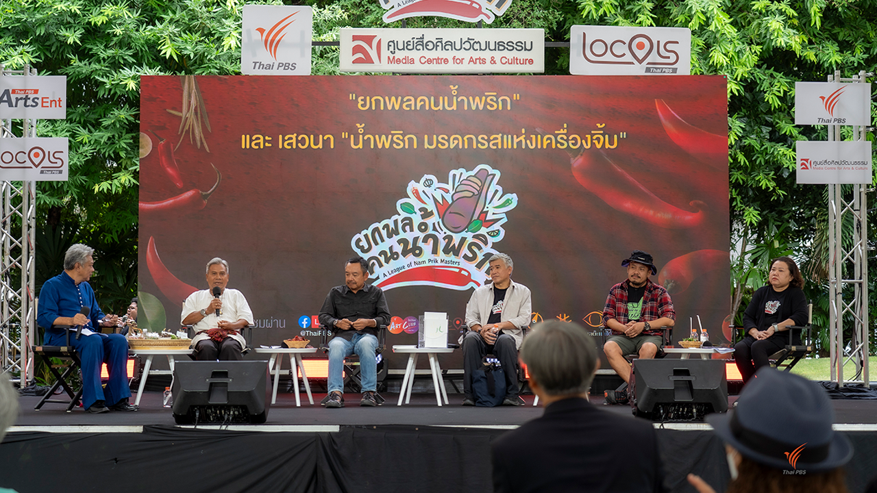 ภายในงานพบกับเวทีเสวนา “น้ำพริก มรดกรสแห่งเครื่องจิ้ม” ซึ่งรวบรวมผู้เชี่ยวชาญทั้งจากวงการอาหารและนักวิชาการ มาร่วมแบ่งปันความรู้เกี่ยวกับน้ำพริกในมุมมองต่างๆ รวมถึงบทบาทของน้ำพริกในการสะท้อนภาพลักษณ์และวิถีชีวิตของชุมชนท้องถิ่นในประเทศไทย นำทีมผู้ร่วมเสวนาโดย พ่อเลี่ยม บุตรจันทา ปราชญ์ชาวบ้านแห่งสวนออนซอน จังหวัดฉะเชิงเทรา, คุณกฤช เหลือลมัย นักโบราณคดี นักเขียน คอลัมนิสต์และผู้เชี่ยวชาญด้านประวัติศาสตร์อาหาร, คุณอนุสรณ์ ติปยานนท์ นักเขียนและ Food activist, คุณจรงค์ศักดิ์ รองเดช ผู้มีประสบการณ์เกี่ยวกับชุมชนท้องถิ่น อาหารและวัตถุดิบทั่วประเทศ, คุณพรรณี รุ่งสว่าง ผู้อำนวยการศูนย์สื่อศิลปวัฒนธรรม ไทยพีบีเอส และคุณสมฤทธิ์ ลือชัย นักวิชาการด้านอุษาคเนย์ ซึ่งเป็นผู้ดำเนินรายการในครั้งนี้