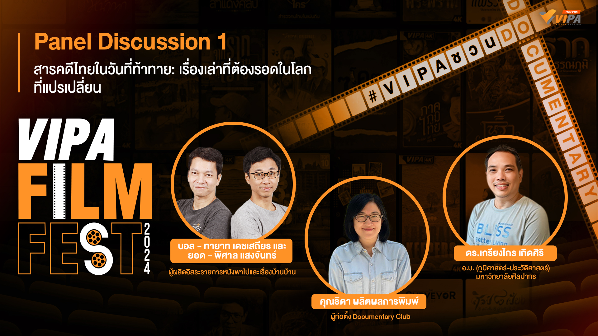 ไฮไลต์ช่วงแรกของงาน VIPA Film Fest 2024 เป็นการร่วมฟัง Speech Talk ในหัวข้อ “The Power of OTT Streaming Platforms พลังแห่งแพลตฟอร์มสตรีมมิงกับเทรนด์การบริโภคสื่อที่เปลี่ยนไป” รวมถึงโอกาสและความท้าทายสำหรับผู้สร้างเนื้อหา และเพื่อการพัฒนาในอนาคตอย่างมีประสิทธิภาพ โดย คุณกนกพร ประสิทธิ์ผล ผู้อำนวยการสำนักสื่อดิจิทัล ไทยพีบีเอส ต่อด้วยการเปิดวงพูดคุยเสวนาพื้นที่เล็ก ๆ ให้กับผู้ผลิตรุ่นใหม่ได้เข้ามาร่วมรับฟังแนวคิดการผลิตรายการและเทรนด์การผลิตสารคดีเพื่อสร้างแรงบันดาลใจ ในหัวข้อ “สารคดีไทยในวันที่ท้าทาย: เรื่องเล่าที่ต้องรอดในโลกที่แปรเปลี่ยน” กับ คุณธิดา ผลิตผลการพิมพ์, อ.ดร.เกรียงไกร เกิดศิริ นักวิชาการ บอล – ทายาท เดชเสถียร และยอด – พิศาล แสงจันทร์ พร้อมเปิดตัวและร่วมรับชมรายการ “เรื่องบ้านบ้าน” สารคดีเรื่องใหม่จาก VIPA Original