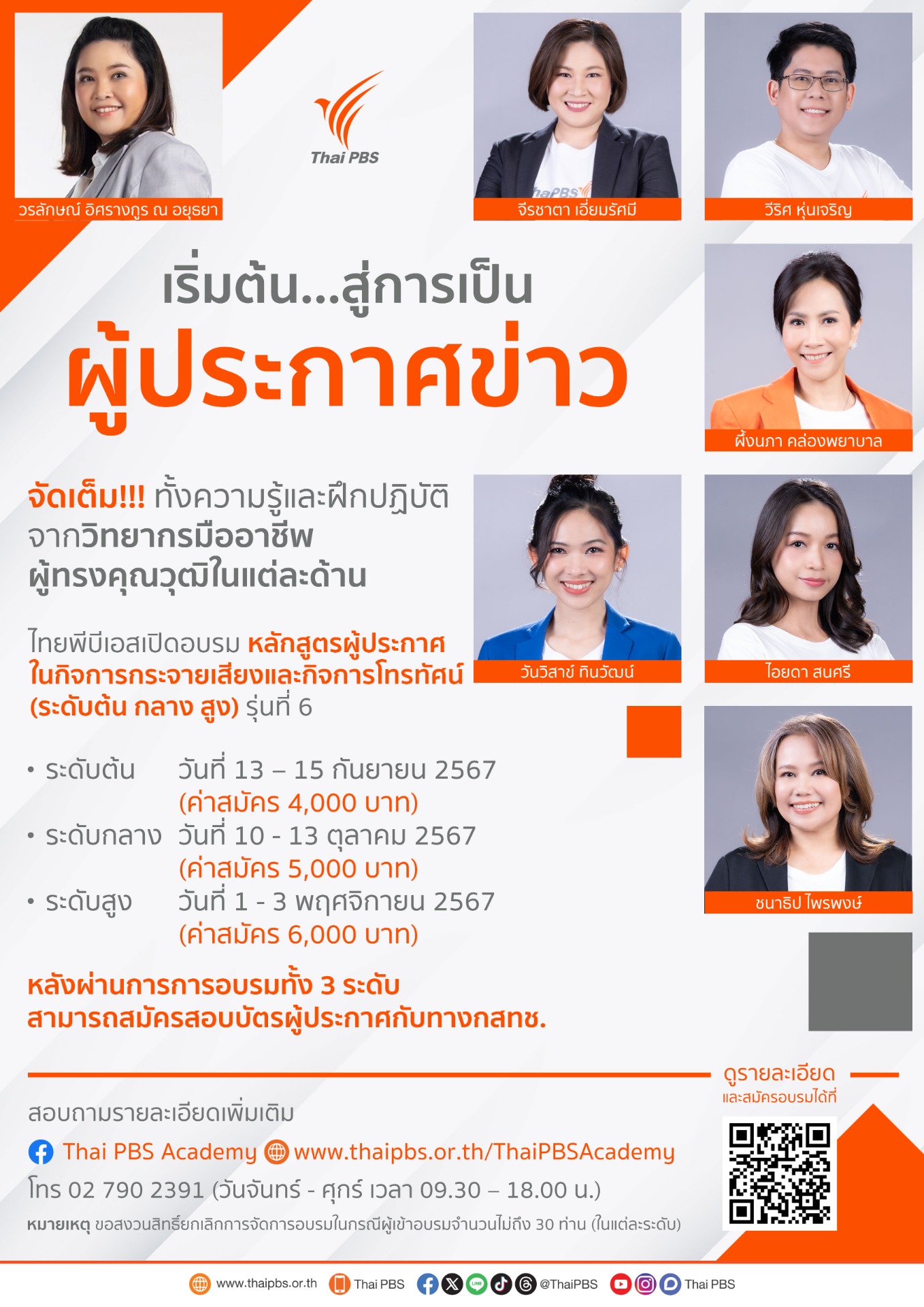 ไทยพีบีเอสเปิดอบรมหลักสูตรผู้ประกาศในกิจการกระจายเสียงและกิจการโทรทัศน์ (ระดับต้น กลาง สูง) รุ่นที่ 6