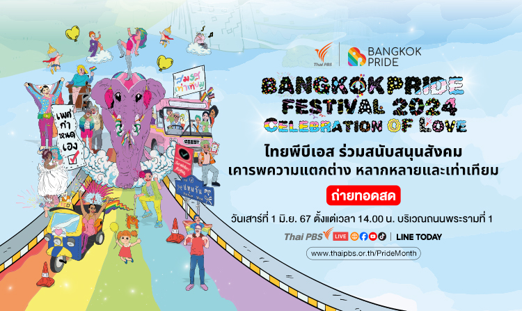 ไทยพีบีเอสร่วมเป็นส่วนหนึ่งในการยกระดับสังคมแห่งความเท่าเทียม เปิดพื้นที่ต้อนรับความหลากหลาย สื่อสารสร้างความเข้าใจและสร้างความสัมพันธ์อันดีระหว่างผู้คนในสังคม สนับสนุนการถ่ายทอดสดอย่างเป็นทางการ บรรยากาศงานขบวนพาเหรดจากบางกอกไพรด์ “Celebration Of Love เฉลิมฉลองสมรสเท่าเทียม” และกิจกรรม “DRAG BANGKOK Festival 2024” ซึ่งสามารถชมสดพร้อมกันทั่วโลกจากทุกช่องทางออนไลน์ของ ThaiPBS ไม่ว่าจะเป็น Facebook, YouTube, TikTok Thai PBS และชมสดแบบ Multi-View พร้อมคำบรรยายทั้งภาษาไทย ภาษาอังกฤษ และภาษามือทางเว็บไซต์ www.thaipbs.or.th/PrideMonth ในวันเสาร์ที่ 1 มิ.ย. 67 ตั้งแต่เวลา 14.00 น. เป็นต้นไป