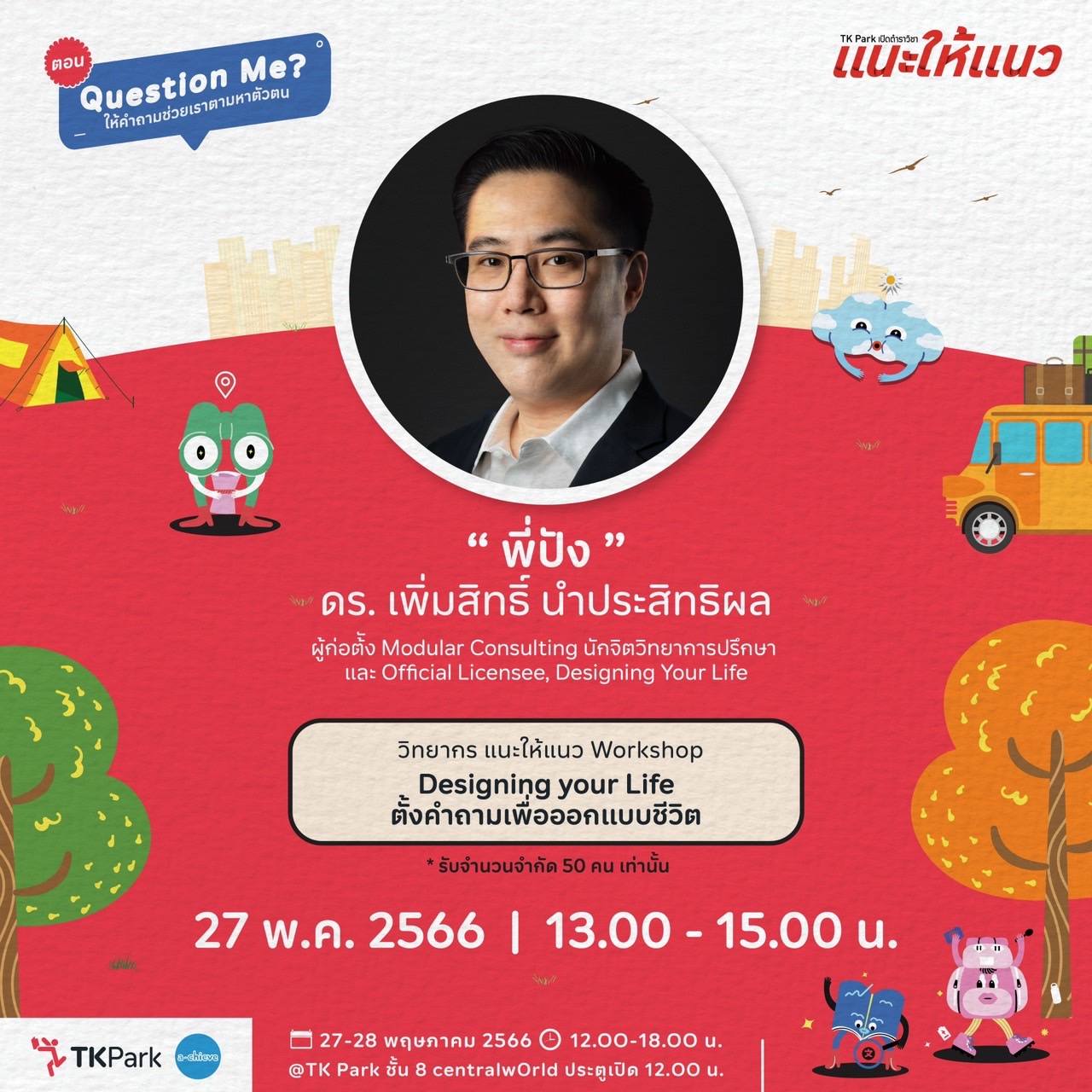 กิจกรรมที่ 2 แนะให้แนว Workshop เวิร์กชอปแบบเป็นกันเองที่จะทำให้การค้นหาตัวเองเป็นเรื่องสนุกกับพี่ ๆ จากอาชีฟ (a-chieve) ธุรกิจเพื่อสังคม และดร.ปัง – เพิ่มสิทธิ์ นําประสิทธิผล ที่ปรึกษาการออกแบบคำถามเว็บไซต์ Question Me เครื่องมือใหม่ล่าสุดของอุทยานการเรียนรู้ TK Park ที่จะทำให้เด็กไทยได้รู้จักตัวเองมากขึ้นว่า ตัวเองเป็นคนแบบไหน ผ่านการวัดระดับ 6 ขั้นตามแนวคิด Designing Your Life