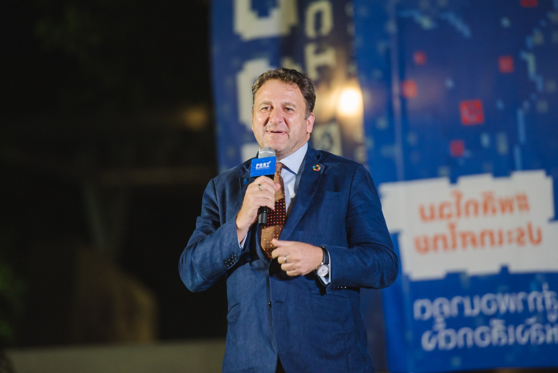 นายเรอโน เมแยร์ ผู้แทนโครงการพัฒนาแห่งสหประชาชาติประจำประเทศไทย กล่าวว่า เราได้มีโอกาสมาร่วมกันถกเถียงและสร้างสรรค์ไอเดีย เพื่อนำสู่การปฏิบัติในอนาคต แต่สิ่งสำคัญในการที่จะพูดถึงเรื่องการเลือกตั้งนั่นคือการมีส่วนร่วม แต่การมีส่วนร่วมไม่ได้เกิดแค่วันเลือกตั้ง แต่เกิดขึ้นในทุก ๆ วัน และถ้าใครสักคนจะเป็นนักการเมืองที่ดีที่สุดที่จะเข้าร่วมมาหาเสียงจะไม่ใช่ที่อื่นไกลแต่คือที่นี่ เพราะที่นี่คือที่ ๆ เต็มไปด้วยความคิดเห็นทั้งหมดที่กลั่นกรองออกมาแล้วจากทุก ๆ ท่าน