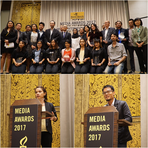 เมื่อวันที่ 25 ม.ค. 2561 สถานีโทรทัศน์ไทยพีบีเอสเข้ารับรางวัล สื่อมวลชนเพื่อสิทธิมนุษยชน ประจำปี 2560 ณ โรงแรมเดะสุโกศล จัดโดย องค์กรแอมเนสตี้ อินเตอร์เนชั่นแนล ประเทศไทย คัดเลือกผลงานสื่อมวลชนดีเด่นด้านสิทธิมนุษยชน ในโอกาสนี้ไทยพีบีเอสได้รับ 2 รางวัล คือ