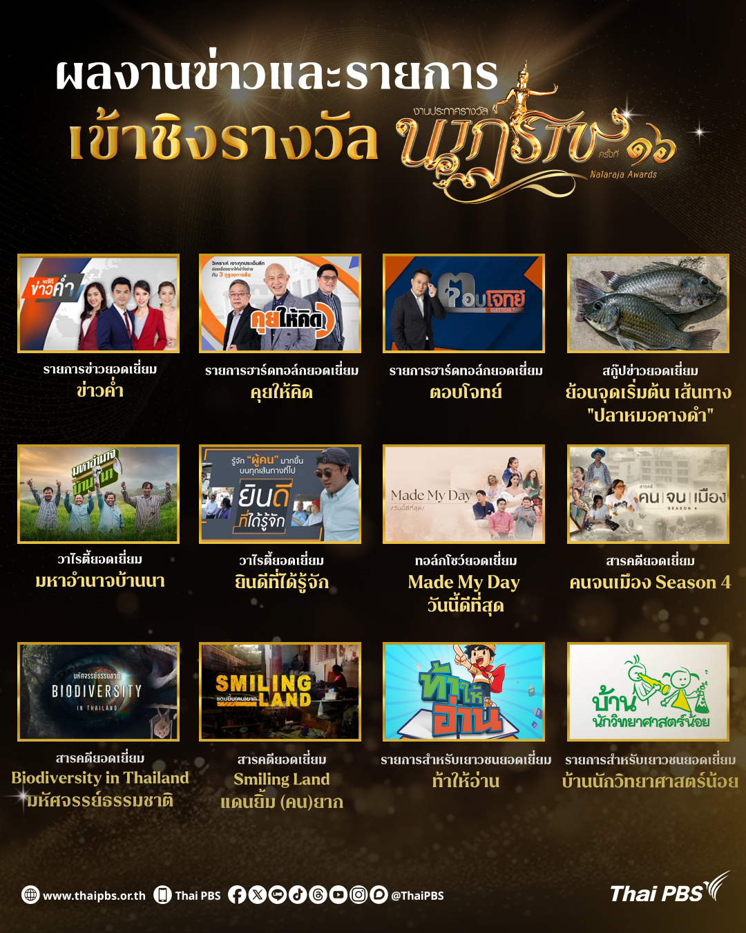ไทยพีบีเอสเข้าชิงรางวัลนาฏราช ครั้งที่ 16 ด้วยผลงานกว่า 30 รางวัล