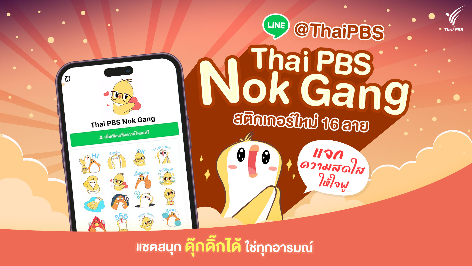 ติดตามข่าวสารและรับบริการต่าง ๆ ได้ที่ LINE @ThaiPBS และเตรียมพบกับสติกเกอร์ชุดใหม่จาก Thai PBS Nok Gang ที่จะทำให้การแชตของคุณสนุกและมีสีสันมากยิ่งขึ้น!