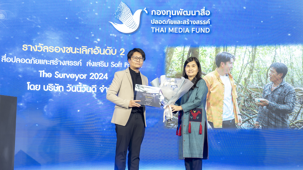 บริษัท วันนี้วันดี จำกัด ผู้ผลิตรายการ The Surveyor 2024 ขึ้นรับรางวัลสื่อปลอดภัยเเละสร้างสรรค์ ส่งเสริม Soft Power