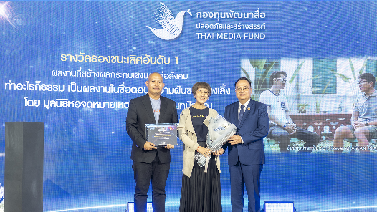 มูลนิธิหอจดหมายเหตุพุทธทาส อินทปัญโญ และโปรดิวเซอร์รายการ ทำอะไรก็ธรรม ขึ้นรับรางวัลผลงานที่สร้างผลกระทบเชิงบวกต่อสังคม