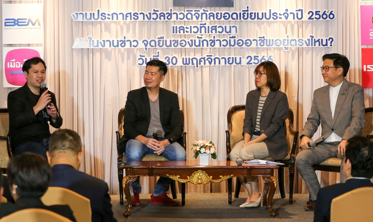 ภายในงานยังมีการจัดงานเสวนา “AI ในงานข่าว จุดยืนของนักข่าวมืออาชีพอยู่ตรงไหน?” โดยมีนางสาวกนกพร ประสิทธิ์ผล ผู้อำนวยการสำนักสื่อดิจิทัล และที่ปรึกษาสมาคมผู้ผลิตข่าวออนไลน์ จากไทยพีบีเอส, ดร.วินน์ วรวุฒิคุณชัย Founder & CEO BOTNOI Group และ วิโรจน์ ฐานไพศาลกิจ Production Business Director, MBCS Thailand เข้าร่วมเป็นวิทยากรในการเสวนา ณ ห้องมรกต ชั้น 3 โรงแรมดิเอมเมอรัลด์ กรุงเทพฯ