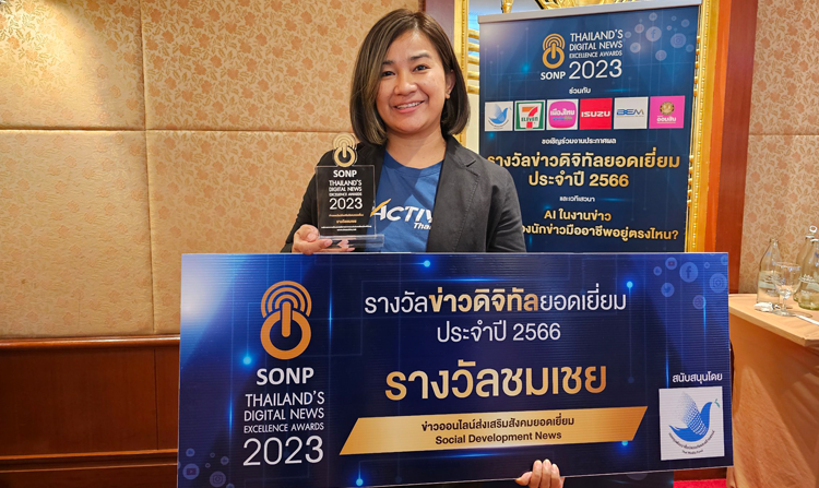 วันนี้ (30 พ.ย. 2566) องค์การกระจายเสียงและแพร่ภาพสาธารณะแห่งประเทศไทย (ส.ส.ท.) หรือ ไทยพีบีเอส คว้ารางวัลข่าวออนไลน์ส่งเสริมสังคมยอดเยี่ยม (Social Development News) ในงานประกาศผล “รางวัลข่าวดิจิทัลยอดเยี่ยม ประจำปี 2566” (Digital News Exellence Awards 2023 จากสมาคมผู้ผลิตข่าวออนไลน์ ร่วมกับกองทุนพัฒนาสื่อปลอดภัยและสร้างสรรค์, บมจ. ซีพี ออลล์ จำกัด, บริษัท ตรีเพชรอีซูซุเซลส์ จำกัด, บริษัท เมืองไทยประกันชีวิต จำกัด (มหาชน), บริษัท ทางด่วนและรถไฟฟ้ากรุงเทพ จำกัด (มหาชน) และธนาคารออมสิน โดยมี นางสาวอรุชิตา อุตมะโภคิน บรรณาธิการข่าว The Active พร้อมด้วย นายชลธิศ แก้วประเสริฐสม ผู้ชำนาญการอาวุโส ศูนย์สื่อสารวาระทางสังคมและนโยบายสาธารณะ เป็นตัวแทนรับรางวัล