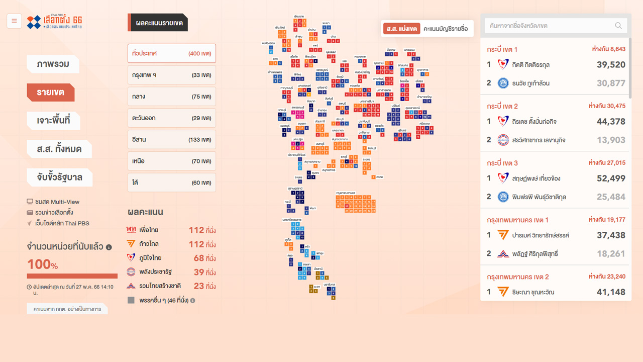 สถานการณ์การเมือง ทั้งช่วงก่อนการเลือกตั้ง วันเลือกตั้งในเดือนพฤษภาคม รวมถึงการจัดตั้งรัฐบาล เป็นประเด็นที่ได้รับความสนใจ และไทยพีบีเอสให้ความสำคัญกับวาระเลือกตั้งอย่างเข้มข้นตั้งแต่ช่วงปลายปี 2565 โดยเฉพาะช่องทางออนไลน์ทุกแพลตฟอร์มทั้งเว็บไซต์และสื่อสังคมออนไลน์ มีคอนเทนต์จำนวนมากในทุกรูปแบบการนำเสนอที่เหมาะสมกับแต่ละแพลตฟอร์ม แต่ละช่วงเวลาอย่างต่อเนื่อง ผสมผสานการใช้เทคโนโลยี AI มีความแปลกใหม่ของการเล่าเรื่องในคอลัมน์ใหม่ ๆ ที่ออกมาในแบบ Gaming, Interactive ไทยพีบีเอสให้ความสำคัญกับ Engagement กับผู้ชมผู้ฟังในแต่ละช่องทาง นอกจากนั้นยังวางกลยุทธ์ของการเชื่อมร้อยกับสื่อโทรทัศน์เพื่อสร้างการเชื่อมโยงแฟน ๆ ในทุกแพลตฟอร์มด้วย
