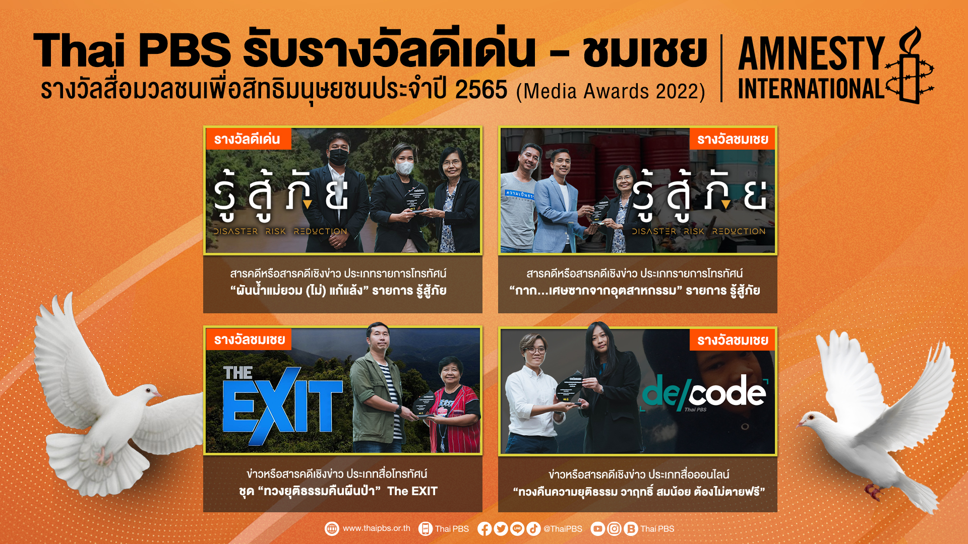 แอมเนสตี้มอบ “รางวัลสื่อมวลชนเพื่อสิทธิมนุษยชน ประจำปี 2565” ไทยพีบีเอสร่วมรับรางวัลดีเด่นและชมเชย จากผลงานข่าวและสารคดีเชิงข่าวเพื่อสังคม