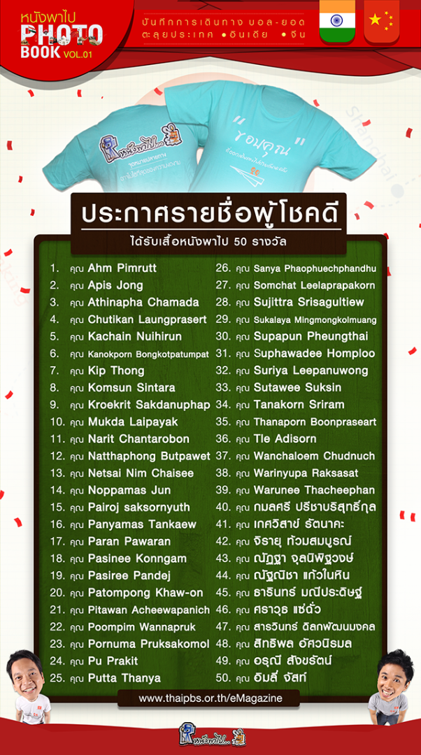 ประกาศรายชื่อผู้โชคดีรับเสื้อ “หนังพาไป” จำนวน 50 รางวัล