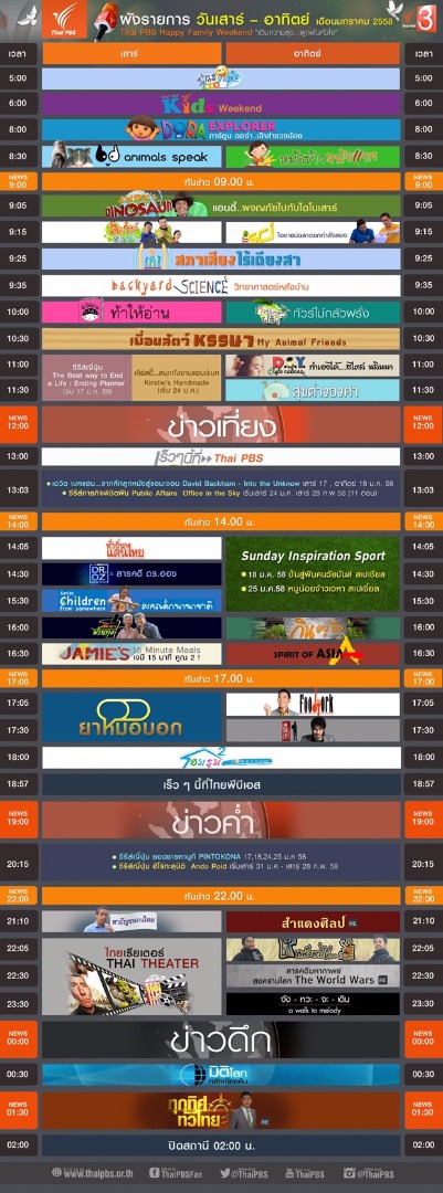 ไทยพีบีเอสปรับผังใหม่ปี 2558 จันทร์-ศุกร์ เอาใจคอข่าว เสาร์-อาทิตย์ วันของทุกคนในครอบครัว