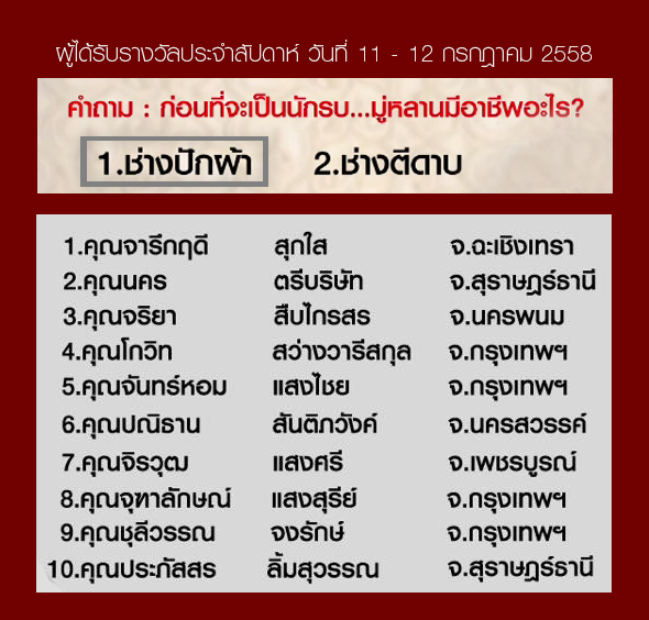 ประกาศรายชื่อผู้ได้รับ”เสื้อยืดซีรีส์มู่หลาน” ประจำสัปดาห์