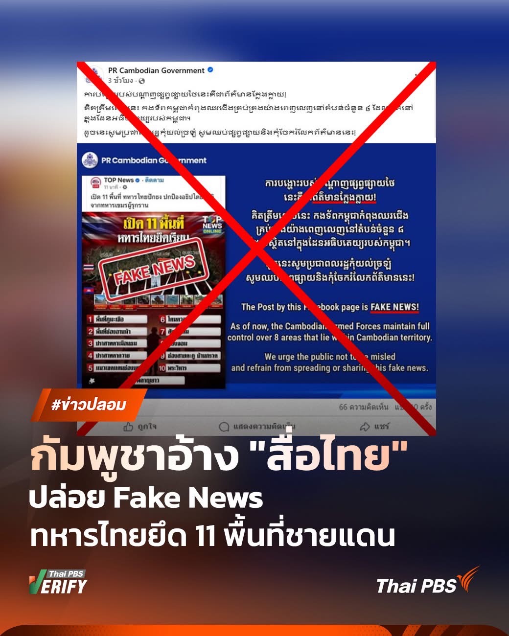สามารถติดตามทุกประเด็นสถานการณ์ไทย – กัมพูชา ที่ผ่านการตรวจสอบแล้วได้ที่ www.thaipbs.or.th/VerifyThaiCambodia หรือในเนื้อหาภาคภาษาอังกฤษที่ www.thaipbs.or.th/VerifyThaiCambodia-EN และหากพบหรือสงสัยว่าภาพหรือข่าวที่ได้รับเชื่อถือได้หรือไม่ สามารถส่งมาแจ้งทีมงาน Thai PBS Verify ได้ทางอีเมล Verify@thaipbs.or.th และ Thai PBS Verify Social Media : Facebook, Instagram, TikTok และ LINE