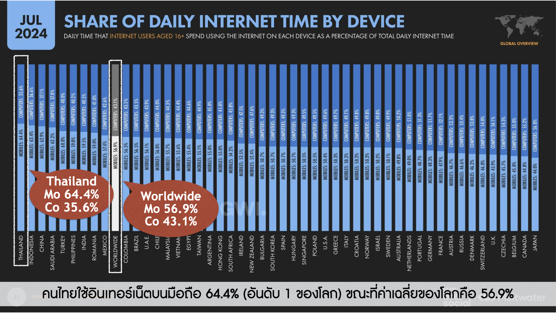 คุณกนกพร ประสิทธิ์ผล ผู้อำนวยการสำนักสื่อดิจิทัล ไทยพีบีเอส กล่าวถึงพฤติกรรมการใช้งานมือถือในแนวตั้ง หรือ Vertical Mobile Behavior ที่ได้รับความนิยมมากขึ้นอย่างต่อเนื่อง จากรายงาน Digital 2024 Global Overview Report ล่าสุดในปี 2567 ระบุว่า คนไทยใช้อินเทอร์เน็ตบนมือถือ 64.4% สูงเป็นอันดับ 1 ของโลก ขณะที่ค่าเฉลี่ยของโลกคือ 56.9%