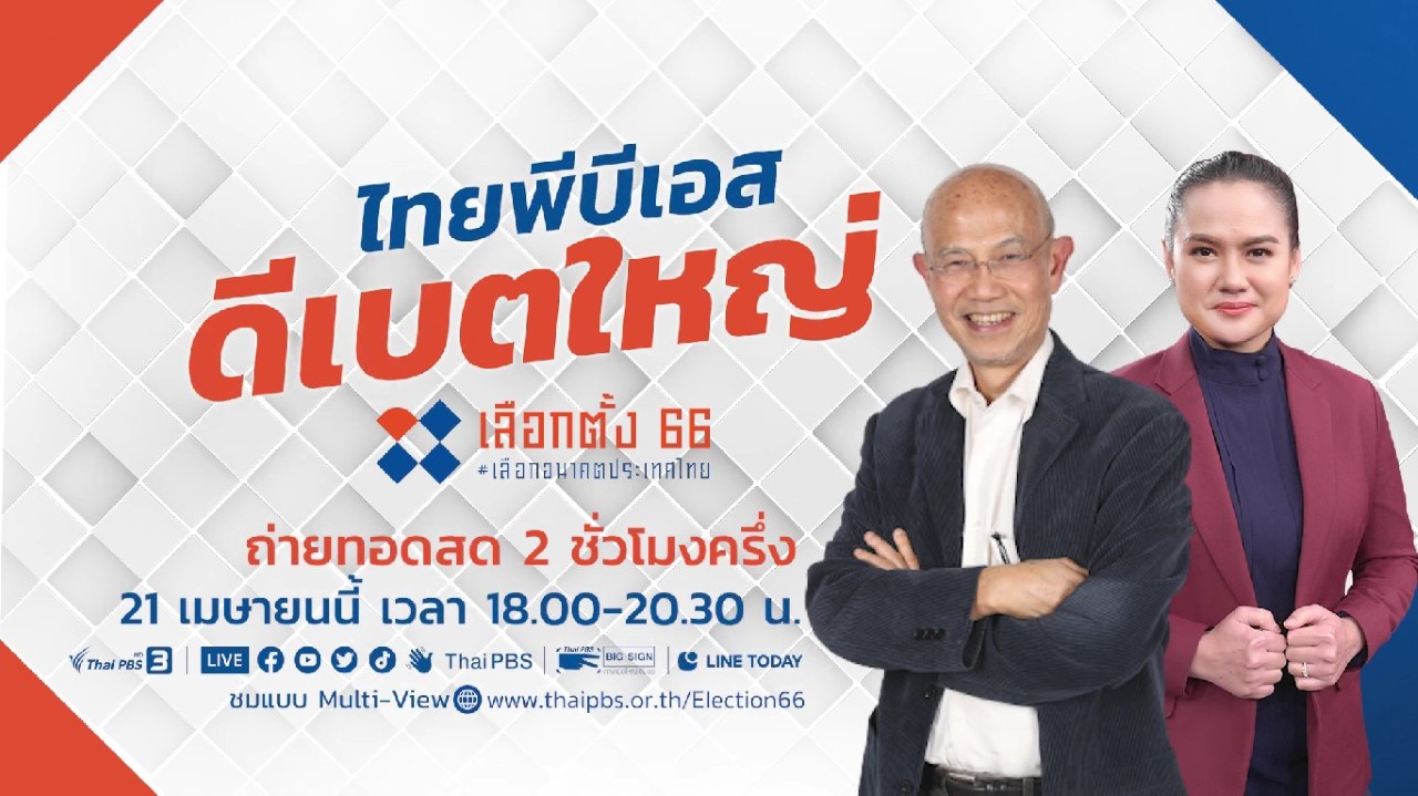 ติดตามรับชมการถ่ายทอดสด เวทีไทยพีบีเอสดีเบตใหญ่ เลือกตั้ง 66 เลือกอนาคตประเทศไทย ในวันศุกร์ 21 เมษายน 2566 กับหลากหลายมุมมอง ที่คุณสามารถเลือกรับชมได้ตามต้องการ
