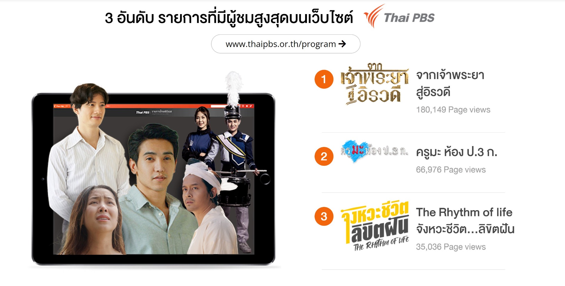 เนื้อหาที่มีผู้ชมสูงสุด 3 อันดับบนเว็บไซต์ Thai PBS WORLD