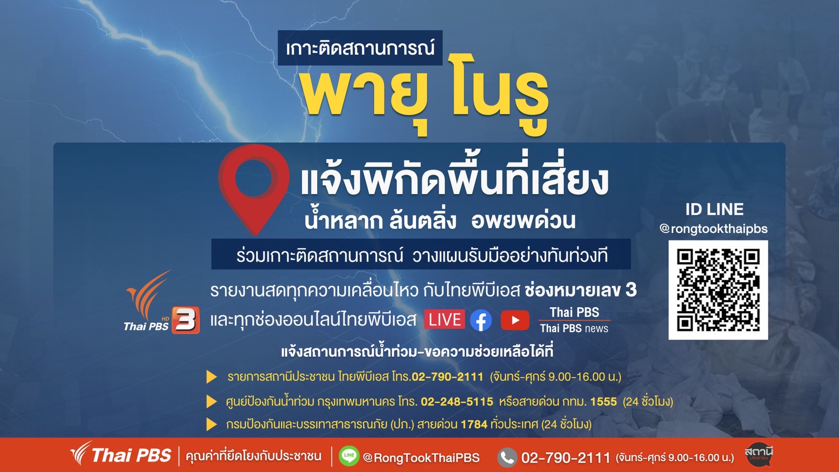 ไทยพีบีเอส จัดทัพเสริมรายการพิเศษ “เกาะติดพายุโนรู” เพื่อเตรียมความพร้อมรับมือด่วน !! กับพายุลูกใหญ่ในทุกช่วงข่าวไทยพีบีเอส