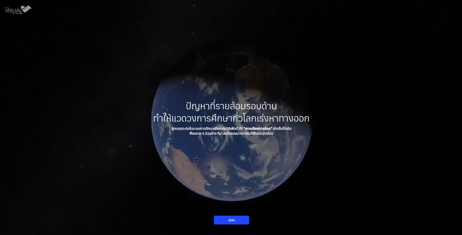 เพื่อมองสถานการณ์นี้ให้ชัดเจนขึ้น ไทยพีบีเอส ขอเชิญร่วมสำรวจผลกระทบของโควิด-19 ที่ผลักให้บุคลากรทางการศึกษา ต้องก้าวเข้าสู่การเรียนการสอนในรูปแบบทางไกล ไม่ว่าพวกเขาจะพร้อมหรือไม่ พร้อมชมแนวทางการเรียนการสอนรูปแบบใหม่ ๆ ที่ทั้งสร้างสรรค์และน่าสนใจจากทั่วทุกมุมโลก ร่วมย้อนกลับมาหาคำตอบว่า… แนวทางการศึกษาแบบไหน ? ที่จะเหมาะสมกับระบบการศึกษาไทยในยุคโควิด-19 กับ โปรเจกต์ “The Visual By Thai PBS” ชุด “เรียนทางไกล…อีกไกลแค่ไหน ? กว่าเด็กไทยทุกคนจะไปถึง”