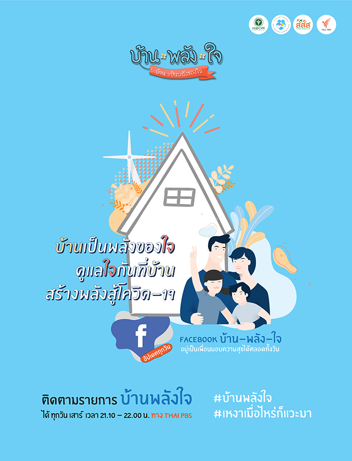 ไทยพีบีเอส ผุดไอเดียสร้างสรรค์รายการ “บ้าน-พลัง-ใจ” โดยร่วมกับกรมสุขภาพจิตและสำนักงานกองทุนสนับสนุนการสร้างเสริมสุขภาพ (สสส.) ออกแบบเนื้อหาเชื่อมความสัมพันธ์และการอยู่ร่วมกันอย่างมีคุณค่า มีความสุขปลอดภัยของสมาชิกในครอบครัวและสังคม เสริมสร้างจิตปัญญา เน้นความสุขทางใจ ในภาวะที่โลกต้องเผชิญกับการระบาดของไวรัส COVID-19 รวมถึงเตรียมความพร้อมในการดำเนินชีวิตของคนไทยหลังสถานการณ์การแพร่ระบาดคลี่คลาย