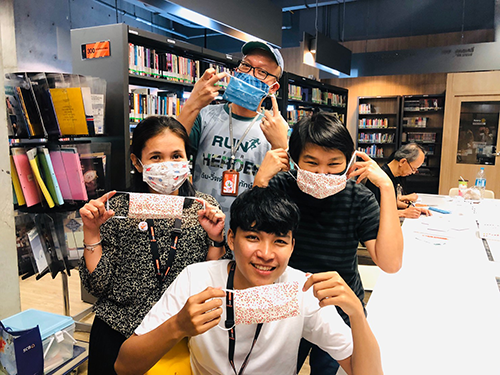 พนักงานไทยพีบีเอส ร่วมมือร่วมใจผลิตหน้ากากอนามัยผ้ามัสลิน แบ่งปันให้กับเพื่อนพนักงานที่ต้องปฏิบัติงานในช่วงการระบาดของไวรัส COVID-19 ในโครงการ “จิตอาสาทำหน้ากากอนามัย เเบบ D.I.Y”