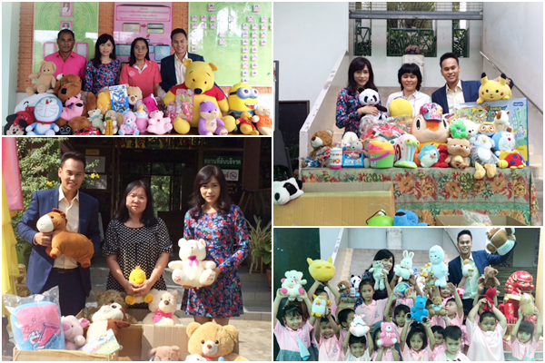 ผู้ประกาศข่าวไทยพีบีเอสเป็นตัวแทนมอบตุ๊กตาและของเล่นให้กับเด็กจาก 3 มูลนิธิ