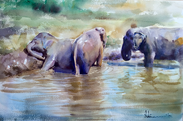 ผลงานตัวอย่าง ภาพวาดสีน้ำจากศิลปิน อดิศร พรสิริกาญจน์