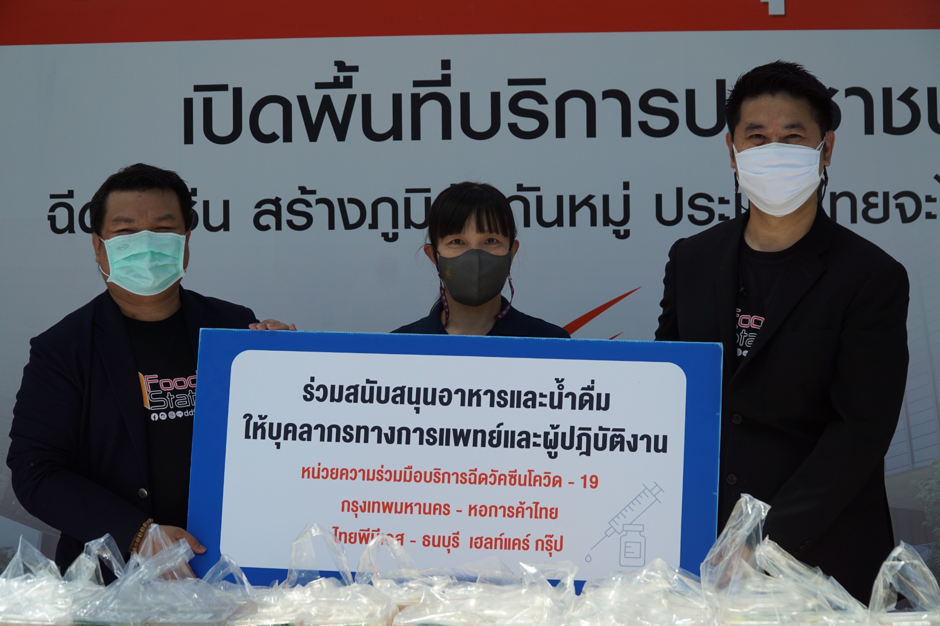 ตามที่ หน่วยความร่วมมือบริการฉีดวัคซีนโควิด–19 กรุงเทพมหานคร – หอการค้าไทย – ไทยพีบีเอส – ธนบุรี เฮลท์แคร์ กรุ๊ป ณ ไทยพีบีเอส สำนักงานใหญ่ ถนนวิภาวดีรังสิต ได้เปิดบริการฉีดวัคซีนให้กับประชาชนที่ได้ลงทะเบียนผ่านเว็บไซต์ www.ไทยร่วมใจ.com หรือแอปพลิเคชันเป๋าตัง รวมถึงร้านสะดวกซื้อที่ร่วมโครงการ ตั้งแต่วันที่ 7 มิถุนายน 2564 ที่ผ่านมา มีหน่วยงานทั้งภาครัฐ เอกชน และประชาชน ต่างเดินทางมาสนับสนุน ส่งมอบอาหารและเครื่องดื่มให้บุคลากรทางการแพทย์และเจ้าหน้าที่ที่ปฏิบัติงาน ภายในหน่วยบริการฯ อย่างต่อเนื่องตลอดทั้งสัปดาห์
