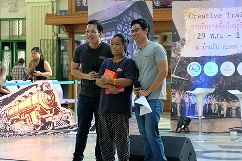 นอกจากนี้ ยังมี บอล ทายาท เดชเสถียร – ยอด พิศาล แสงจันทร์ จากรายการหนังพาไป ไทยพีบีเอส ร่วมกับตัวแทนจากภาคีเครือข่าย คุณลลิตสุดา ศรีพูนภักตร์ จากการการท่องเที่ยวแห่งประเทศไทย คุณปัฐตพงษ์ บุญแก้ว จากการรถไฟแห่งประเทศไทย ผศ.ปริญญา ชูแก้ว อาจารย์ประจำคณะสถาปัตยกรรมศาสตร์ สถาบันเทคโนโลยีพระจอมเกล้าเจ้าคุณทหารลาดกระบัง และคุณนัยเนตร ธาตุบุรมย์ ตัวแทนชุมชนคนบ้านปิน ร่วมแชร์ประสบการณ์การเดินทางโดยรถไฟและสิ่งที่ได้เรียนรู้จากการเดินทาง ในบรรยากาศสบาย ๆ พร้อมเชิญชวนผู้ที่สนใจมาร่วมเดินทางไปยังสถานีรถไฟบ้านปิน กับกิจกรรม “นั่งรถไฟ ท่องเที่ยวไทย ไปกับไทยพีบีเอส” ในวันที่ 29 พฤศจิกายน – 1 ธันวาคม 2562 เพื่อเรียนรู้วิถีชีวิตและสัมผัสบรรยากาศของสถานีรถไฟบ้านปิน จากที่เคยเป็นพื้นที่ที่จะถูกรื้อถอน แต่ในปัจจุบันเป็นพื้นที่ที่สามารถขับเคลื่อนเศรษฐกิจในชุมชนได้อีกแห่งหนึ่ง