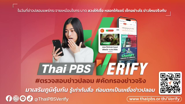 สามารถติดตาม “Thai PBS Verify ตรวจสอบข่าวปลอม คัดกรองข่าวจริง” ได้ที่ www.thaipbs.or.th/Verify และที่ Thai PBS Verify Social Media : Facebook, Instagram และ LINE