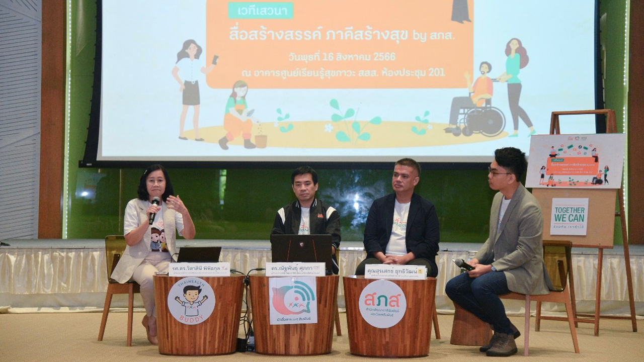 สำนักงานกองทุนสนับสนุนการสร้างเสริมสุขภาพ (สสส.) โดยสำนักพัฒนาภาคีสัมพันธ์และวิเทศสัมพันธ์ (สภส.) จัดกิจกรรม เสวนา “สื่อสร้างสรรค์ภาคีสร้างสุข” by สภส. ภายใต้โครงการความร่วมมือการสื่อสารเพื่อสนับสนุนภาคีสุขภาวะ เพื่อสร้างความร่วมมือกับ 5 สถาบันอุดมศึกษาในการพัฒนานักสื่อสารเพื่อสนับสนุนการสื่อสารการขับเคลื่อนงานภาคีเครือข่ายสุขภาวะ