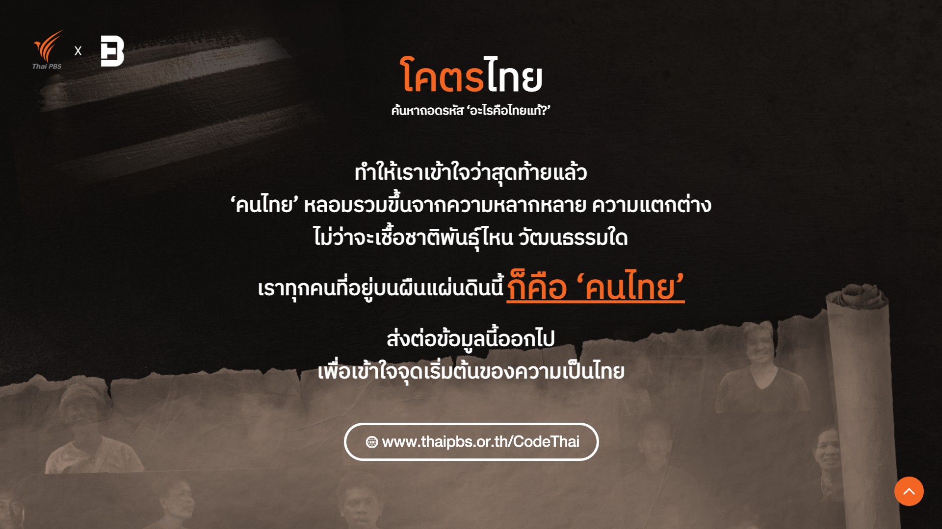 แคมเปญ #โคตรไทย ร่วมถอดรหัส “อะไรคือไทยแท้” ชวนคุณถอดรหัส ค้นหา และเข้าใจใน “ความเป็นไทย” ที่เต็มไปด้วยความหลากหลาย และอาจไม่ได้มีแต่ในตำรา ย้อนกลับไปเข้าใจเรื่องราวของ “เรา” ตั้งแต่ก่อนคำว่า “ไทย” จะถือกำเนิด เพื่อตอบคำถามโลกแตกว่า สุดท้ายแล้ว “ไทยแท้” มีจริงไหม ?