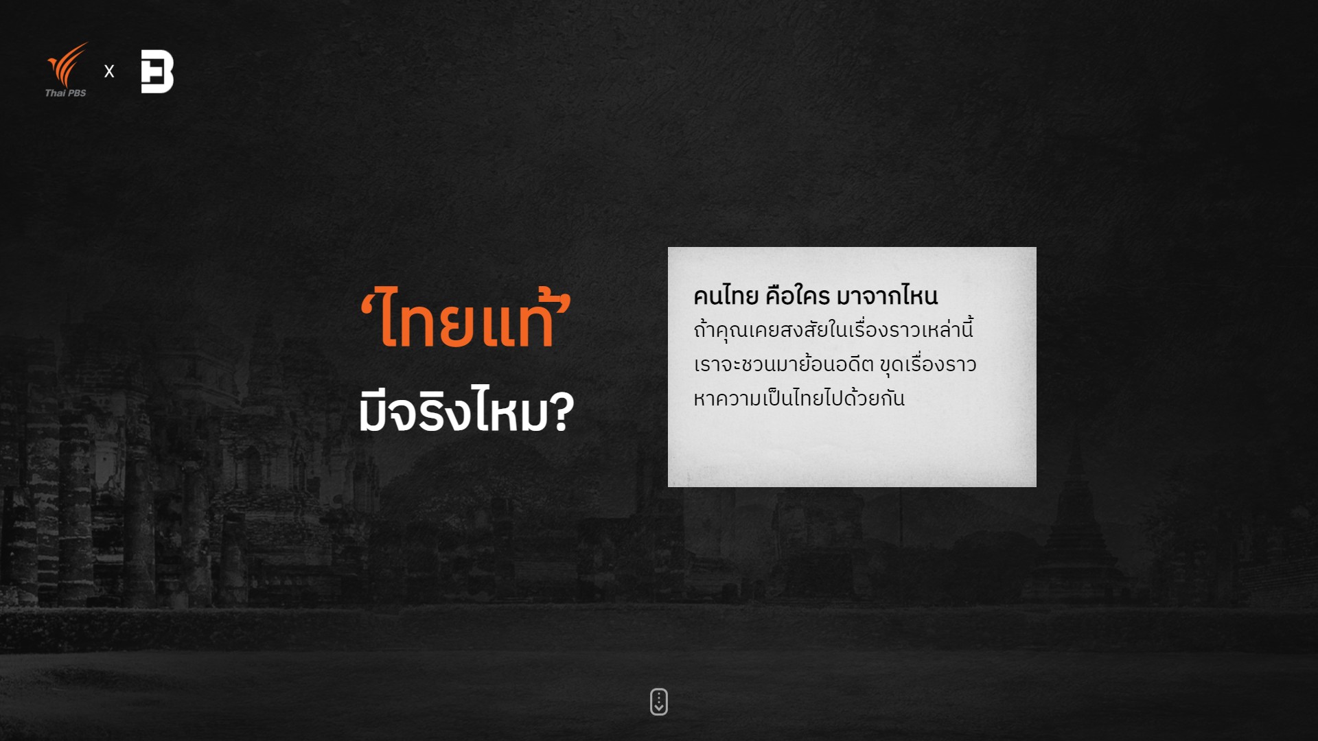 ไทยพีบีเอส อยากจะต่อยอดและหยิบยกข้อมูลเนื้อหาที่น่าสนใจด้านประวัติศาสตร์ สังคม และวัฒนธรรม จากรายการต่าง ๆ ที่ไทยพีบีเอสผลิตออกมาอย่างมากมาย เพื่อนำไปจุดประเด็นสร้างสรรค์ให้เรื่องราวเหล่านั้นแตกออกไปให้ได้รับรู้ในสังคมวงกว้าง โดยเริ่มจากการเลือกสารคดีชุด “เธอ เขา เรา ใคร สำรวจคนไทยในแผ่นดิน” ซึ่งมีเนื้อหาที่น่าสนใจ อัดแน่นด้วยการสืบหา ค้นคว้า ทั้งทางโบราณคดี วิทยาศาสตร์ ประวัติศาสตร์ และชาติพันธุ์ มาถอดข้อมูลและเนื้อหา ในรูปแบบของ Data Visualize บน Microsite เพื่อให้ผู้ที่สนใจสามารถรับรู้เนื้อหาสารคดีทั้ง 5 ตอน ได้ภายใน 10 นาที หรือจะกลับไปรับชมในรูปแบบวิดีโอทั้ง 5 ตอนแบบละเอียดได้อีกครั้งทาง VIPA.me ได้ตลอดเวลา และในขณะเดียวกัน ทางแบรนด์ธิงค์เอง ซึ่งเป็นผู้ผลิต Data Visualize ชุดนี้ ก็สนใจที่จะทำชุดดิจิทัลคอนเทนต์อื่น ๆ ที่เกี่ยวข้องในประเด็น “ความเป็นไทย” ร่วมต่อยอดจากงานดังกล่าว เลยได้ร่วมมือผลิตเป็นแคมเปญนี้ออกมา