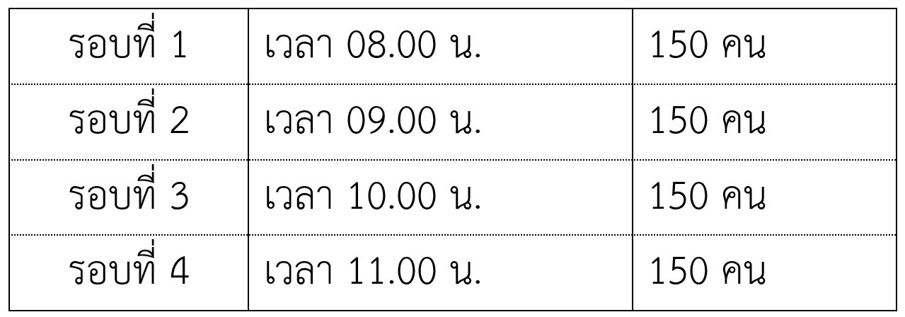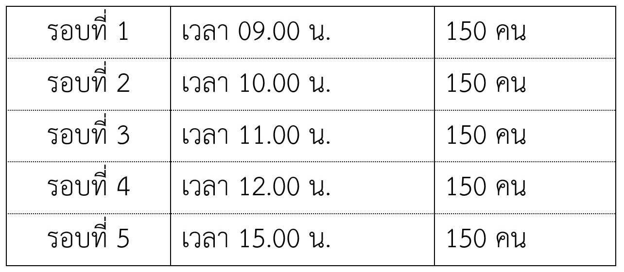 วันพฤหัสบดีที่ 26 ส.ค. 64 มี 5 รอบ จำนวน 750 คน