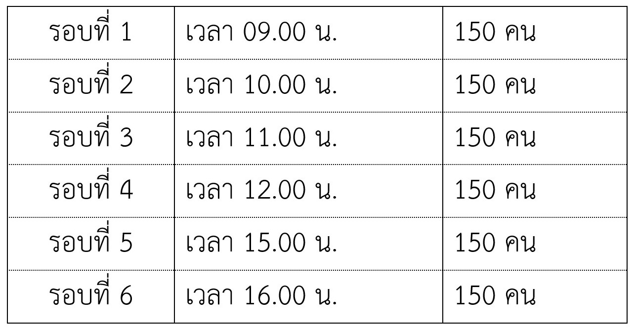 วันเสาร์ที่ 28 ส.ค. 64 มี 6 รอบ จำนวน 900 คน