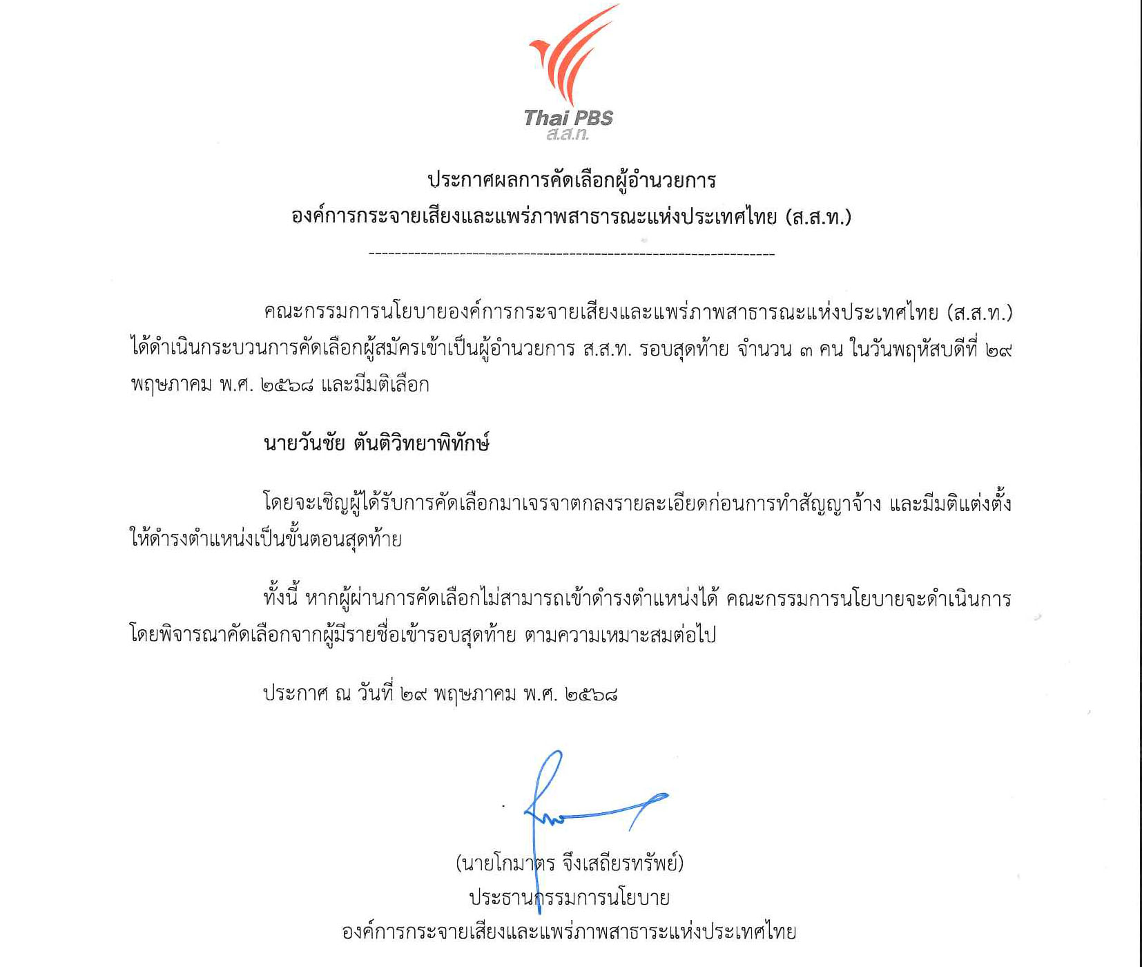 - ไทยพีบีเอสเปิดรับสมัคร ผู้อำนวยการ ส.ส.ท. ตั้งแต่วันที่ 1 – 30 มี.ค. 68