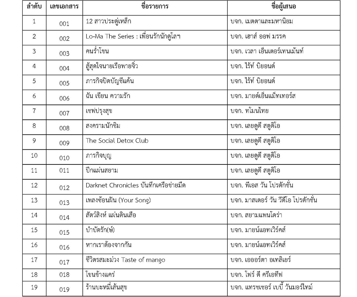 ประกาศรายชื่อผู้ยื่นข้อเสนอที่ผ่านการตรวจสอบคุณสมบัติ รายการละครและซีรีส์โทรทัศน์ Drama Program Commissioning 2567
