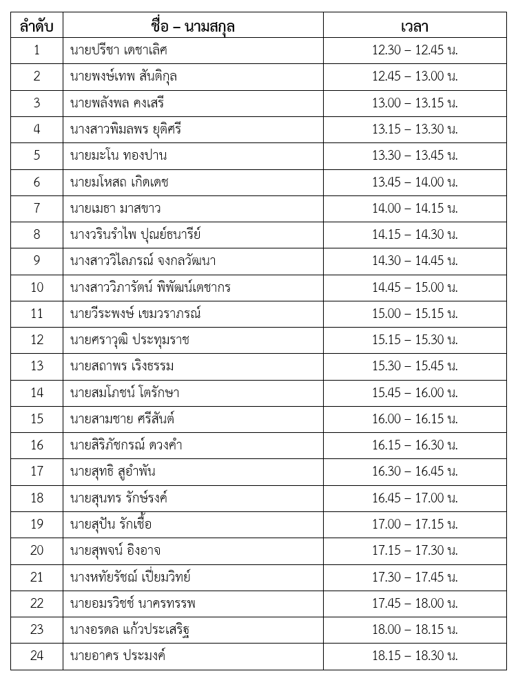 วันที่ 1 สิงหาคม พ.ศ. 2567 เวลา 12.30 – 19.00 น. จำนวน 24 คน