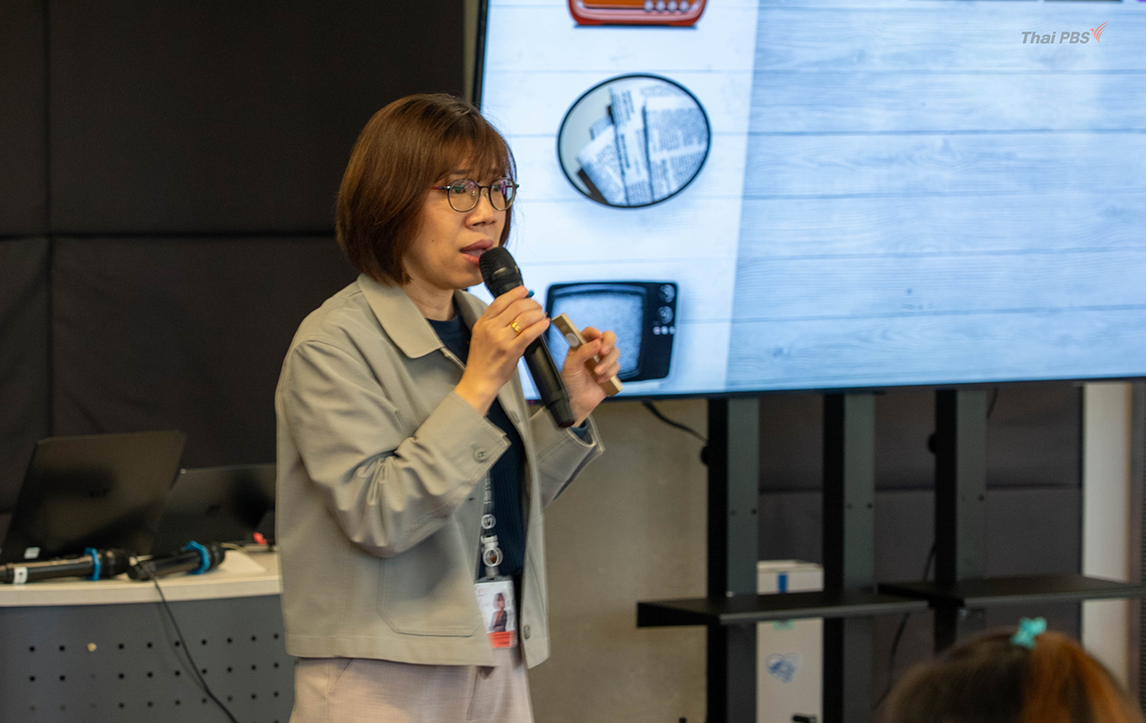นางสาวกนกพร ประสิทธิ์ผล ผู้อำนวยการสำนักสื่อดิจิทัล ไทยพีบีเอส บรรยายในหัวข้อ “การสื่อสารในยุคดิจิทัล” ถ่ายทอดความรู้ผ่าน 4 หัวข้อสำคัญ ที่ช่วยให้เข้าใจการทำงานด้านสื่อสารในยุคดิจิทัลของสื่อสาธารณะมากยิ่งขึ้น