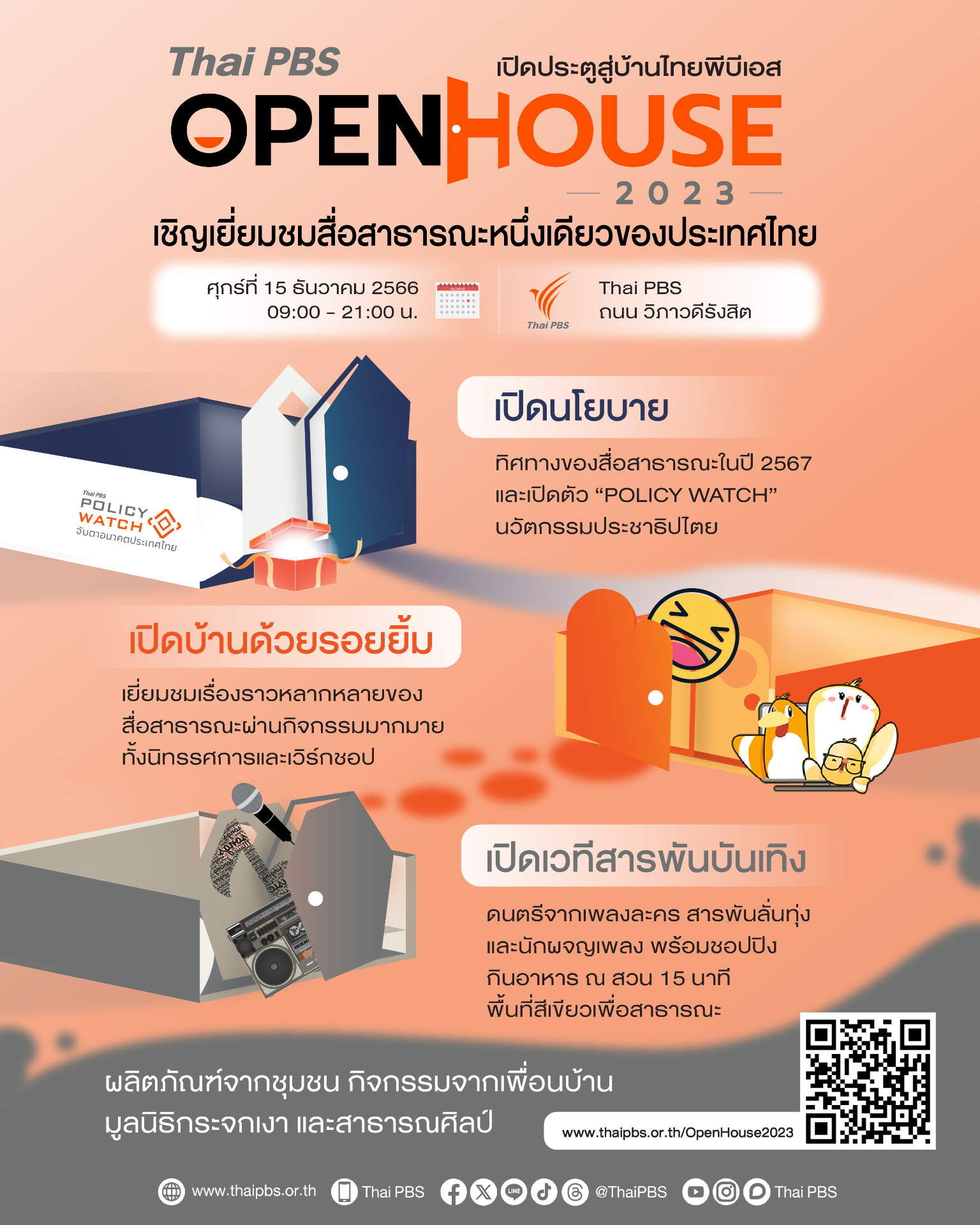 ลงทะเบียนเข้าร่วมงาน และติดตามความเคลื่อนไหวได้ทาง www.thaipbs.or.th/OpenHouse2023