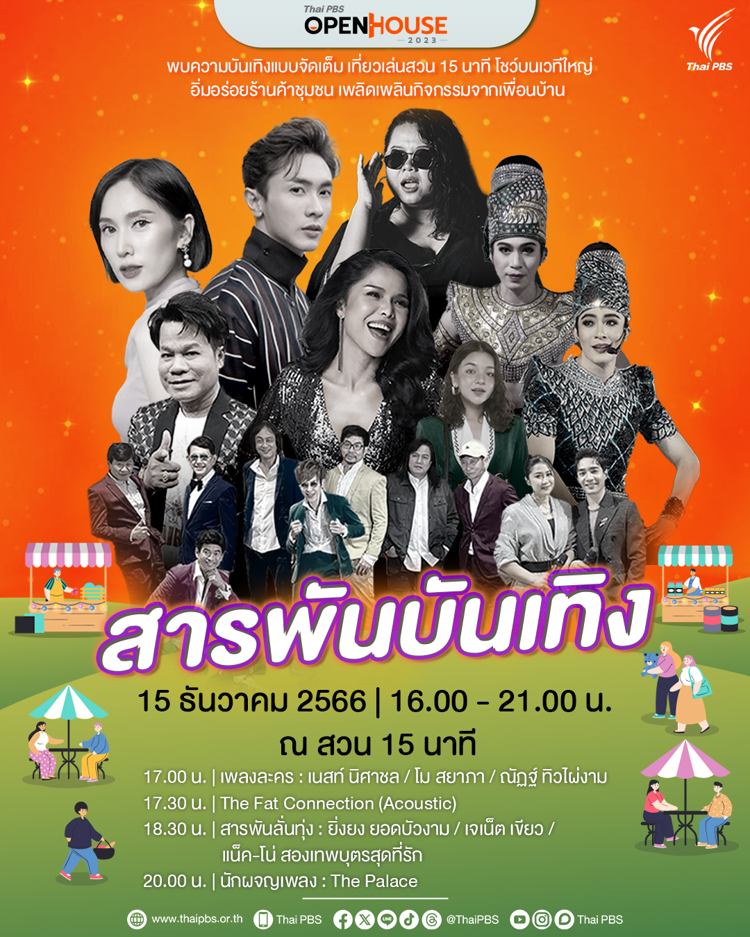 ไทยพีบีเอส จัดกิจกรรม “Thai PBS Open House 2023” เปิดประตูสู่บ้านไทยพีบีเอส 15 ธ.ค.นี้ ร่วมรับฟังบทบาทและทิศทางของสื่อสาธารณะ เสวนา “Thai PBS Forum : Bridging Policy to Public เชื่อมต่อนโยบาย – สาธารณะ” สนุกกับเวทีสารพันบันเทิง ศิลปินจาก “นักผจญเพลง – สารพันลั่นทุ่ง” รวมพลร่วมงานคับคั่ง